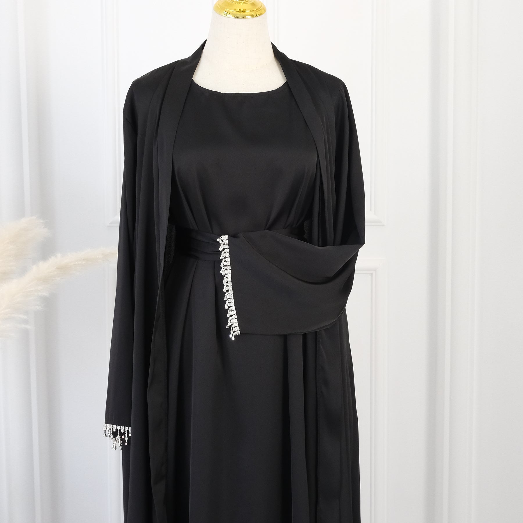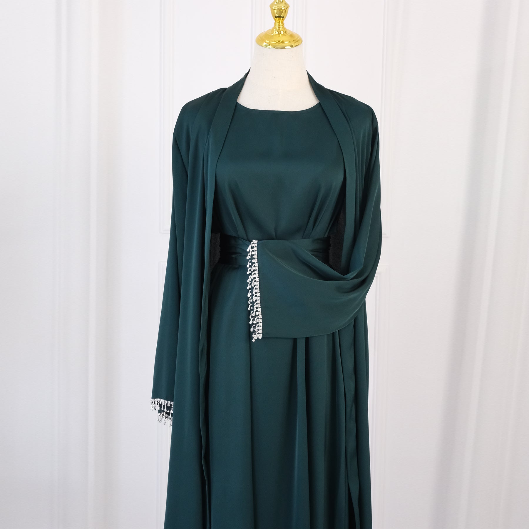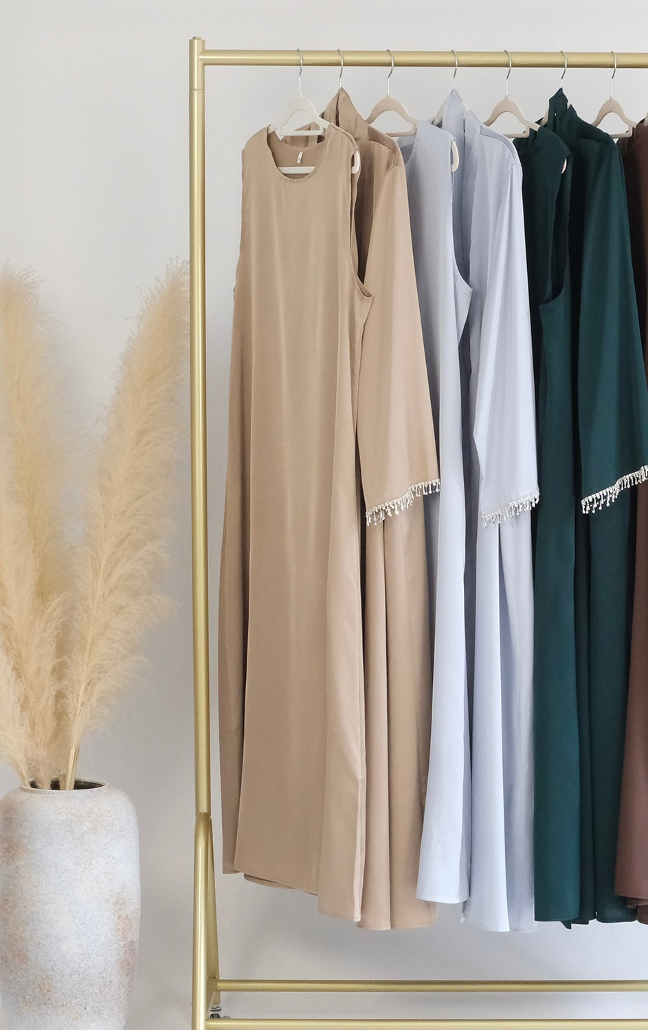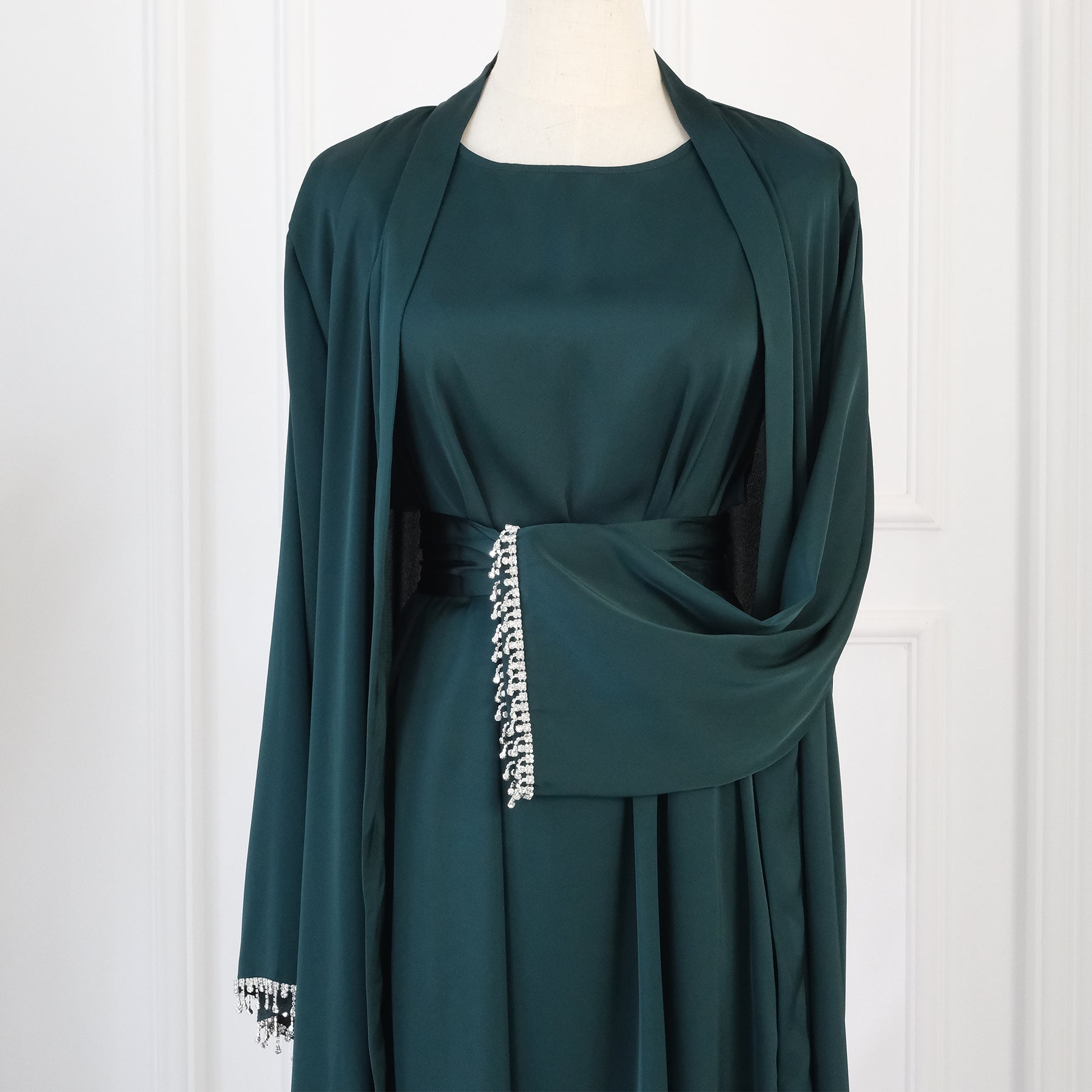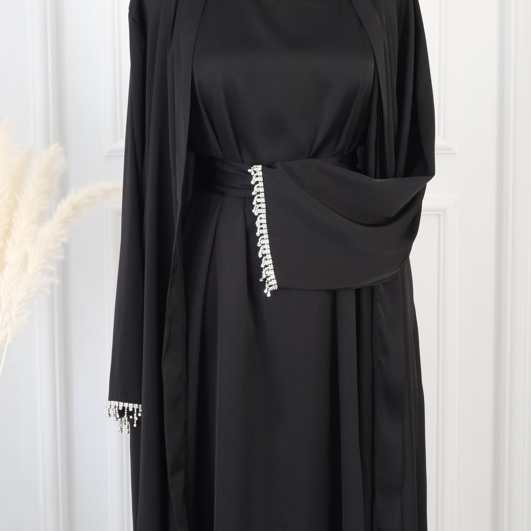 Two piece abaya set, comes with sleeveless inner dress and same matching color outer abaya
