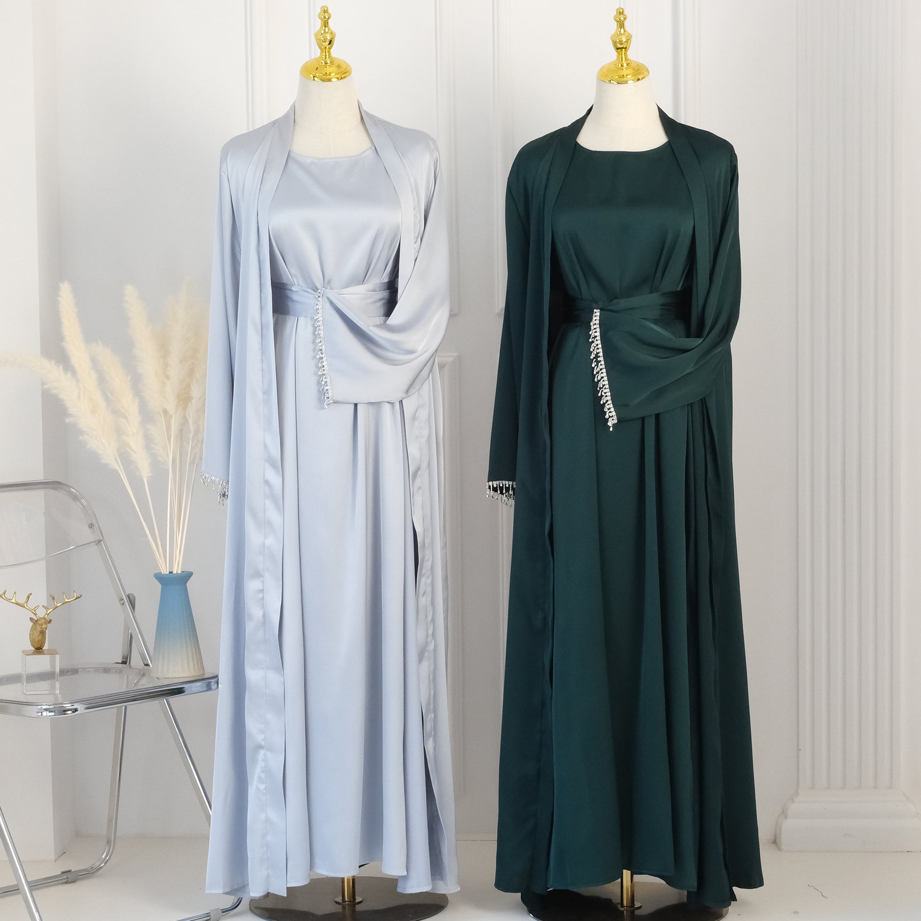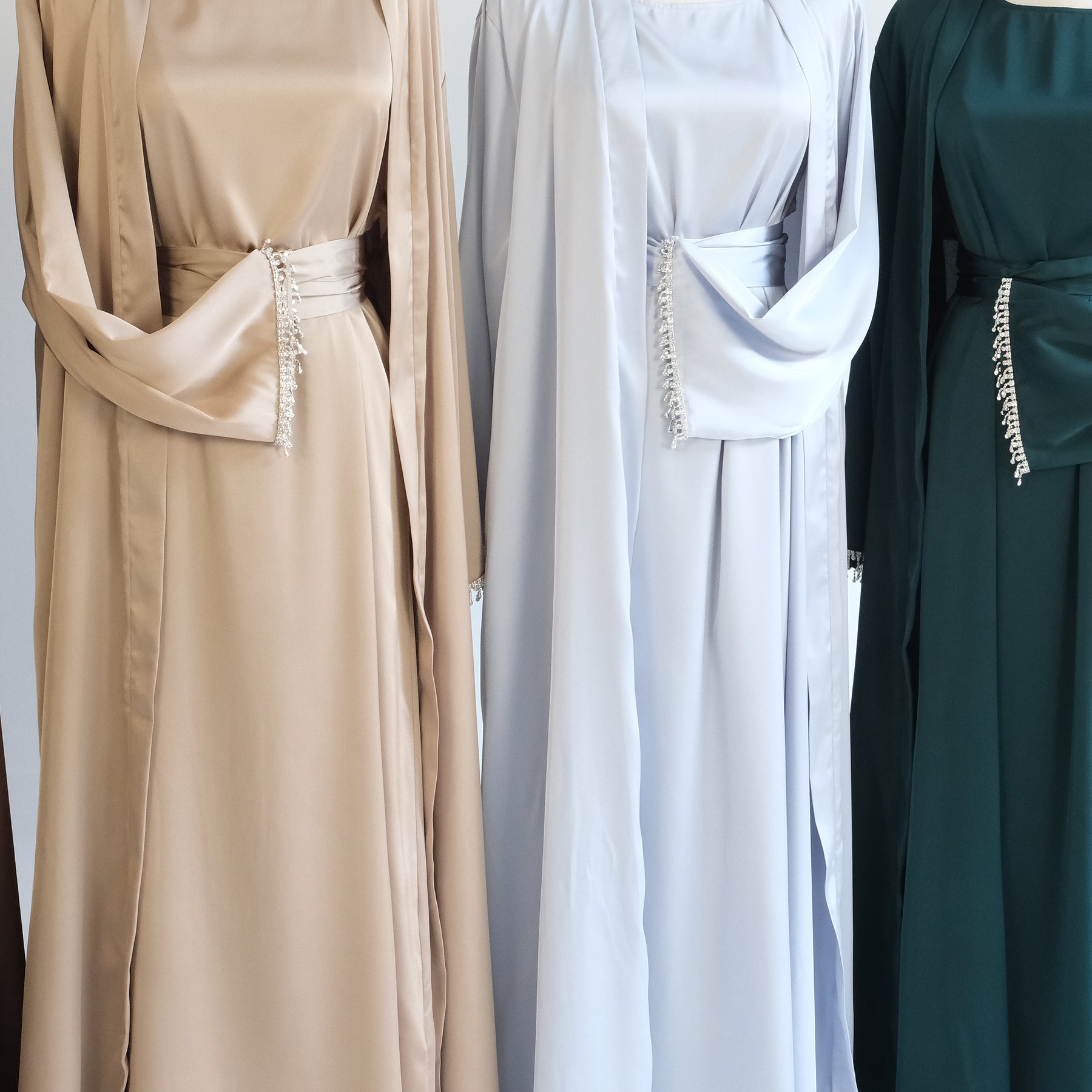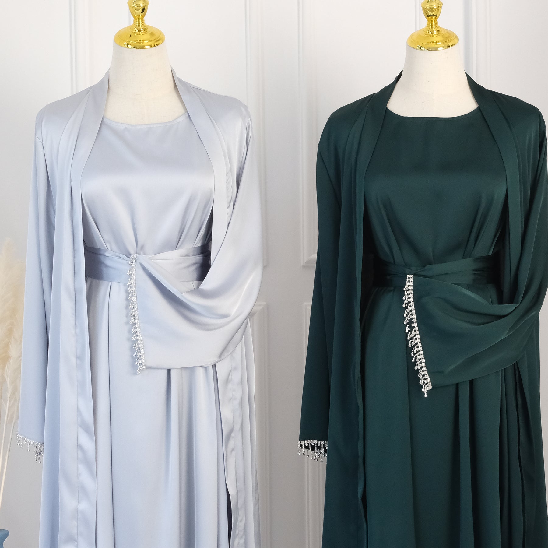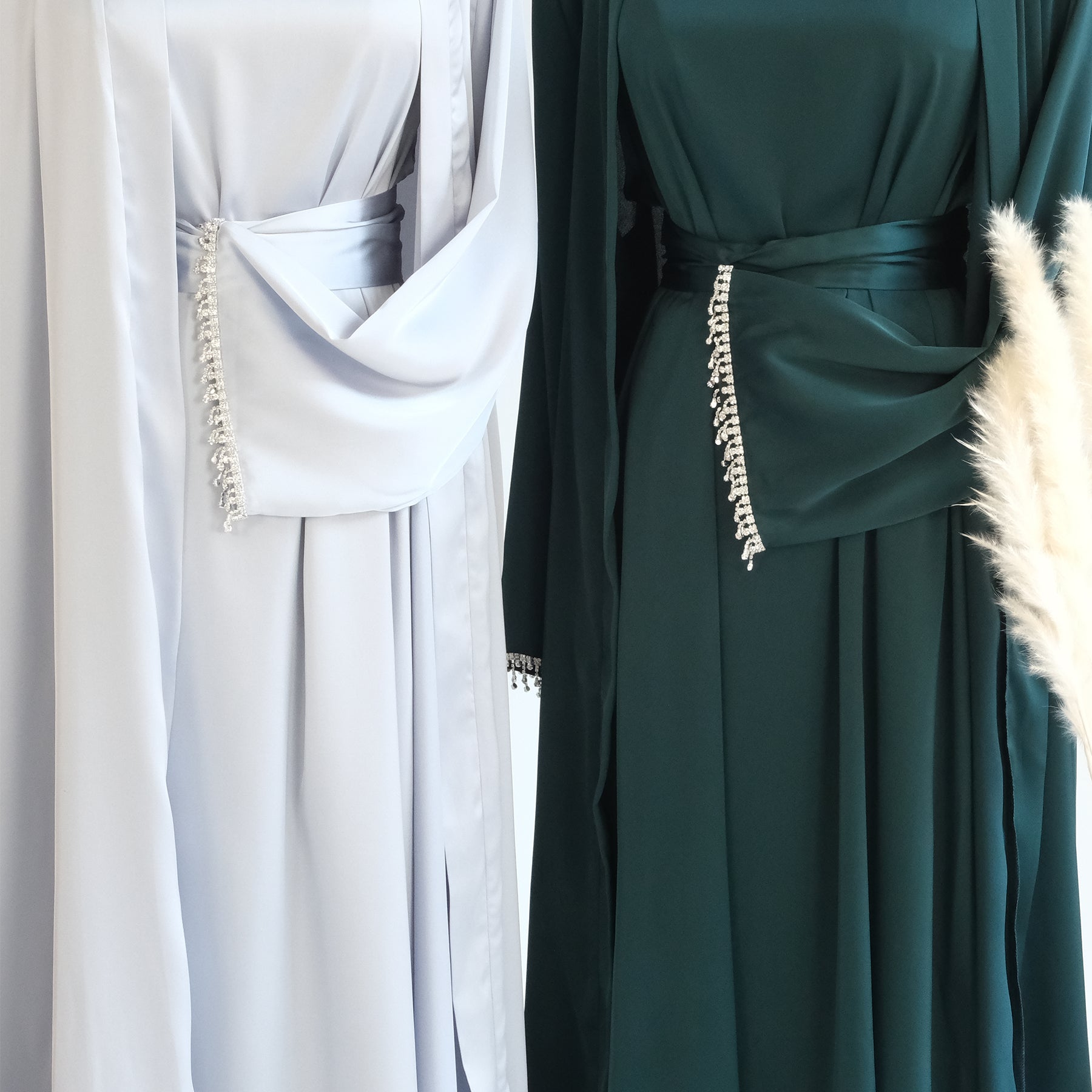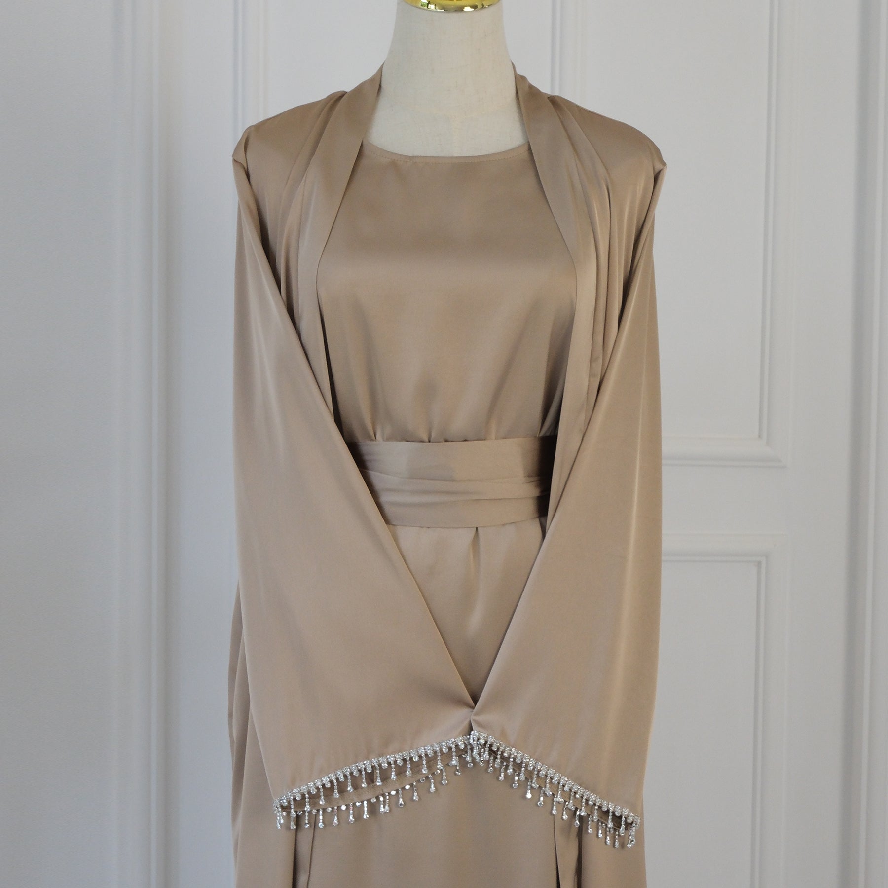 Two piece abaya set, comes with sleeveless inner dress and same matching color outer abaya