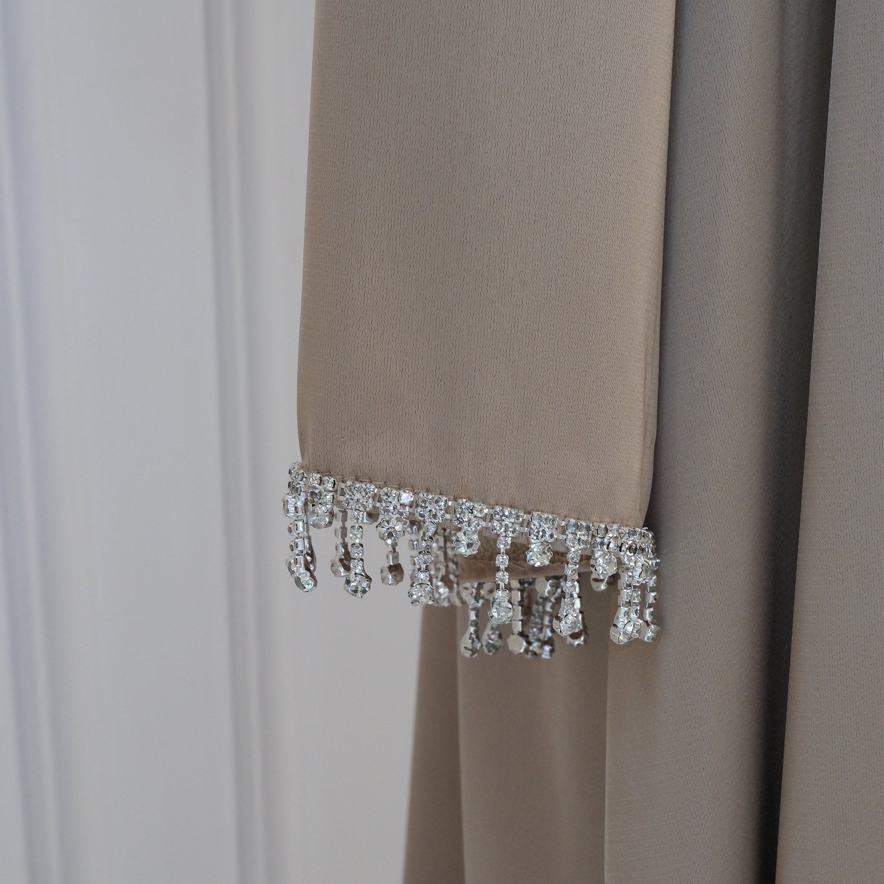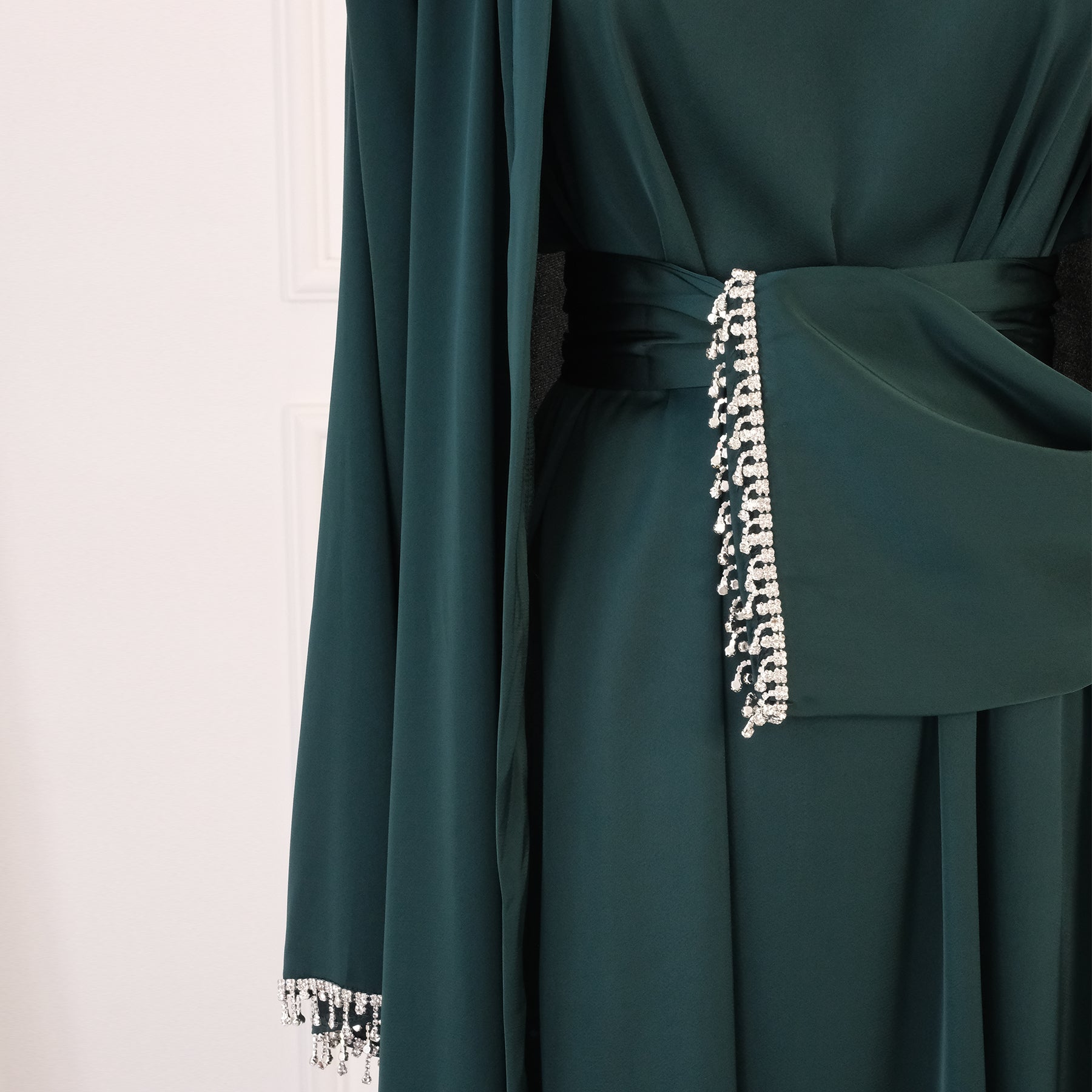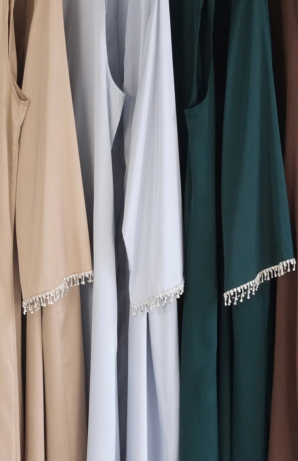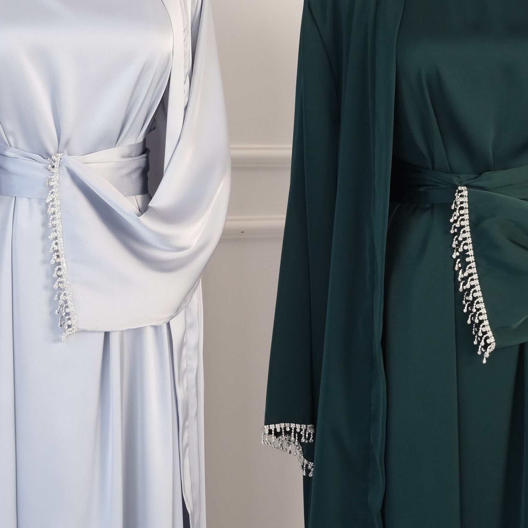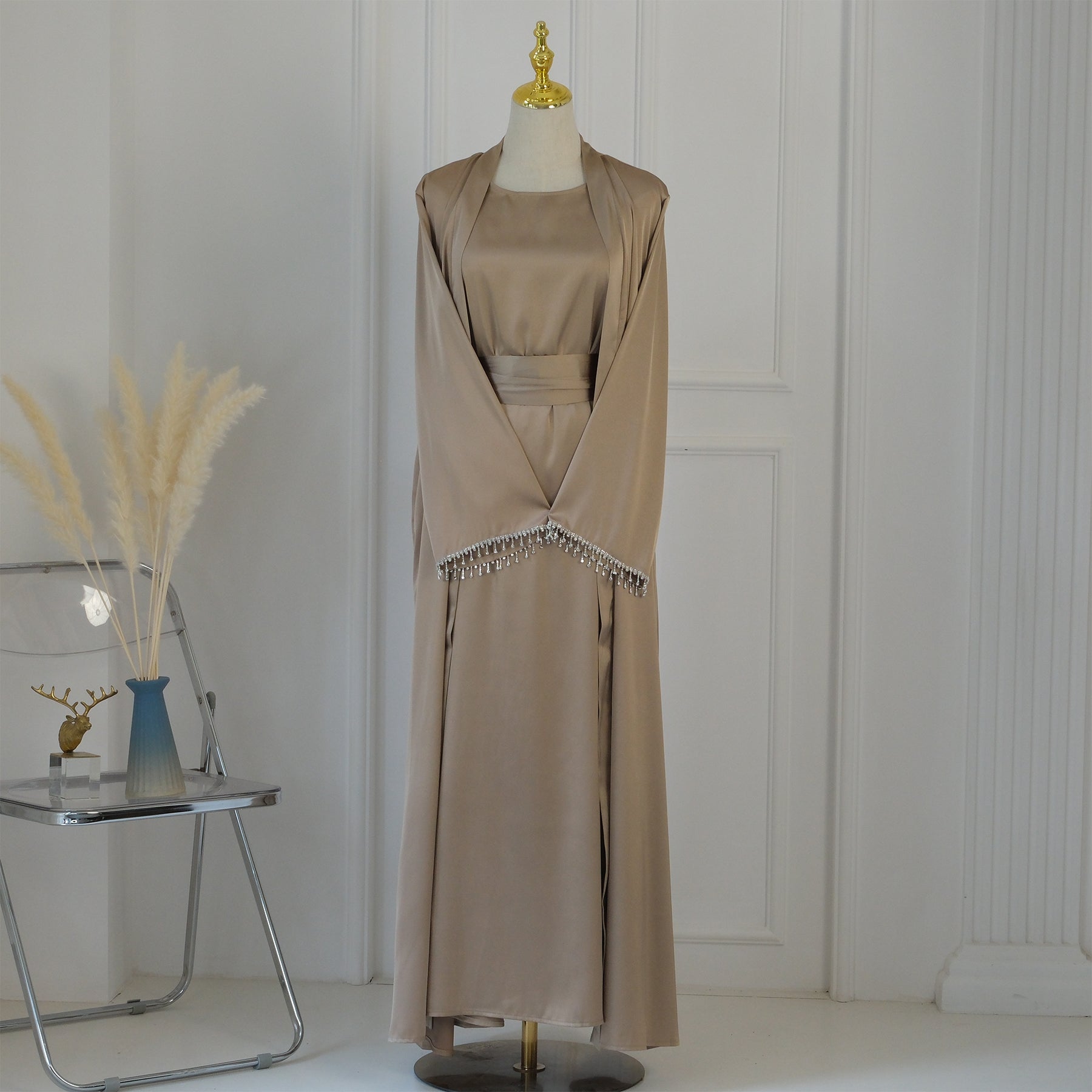 Two piece abaya set, comes with sleeveless inner dress and same matching color outer abaya
