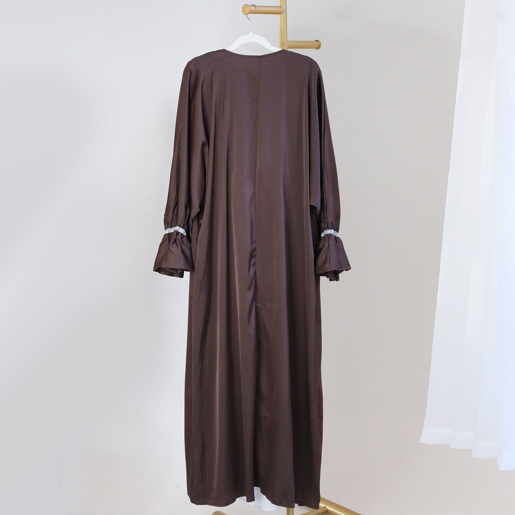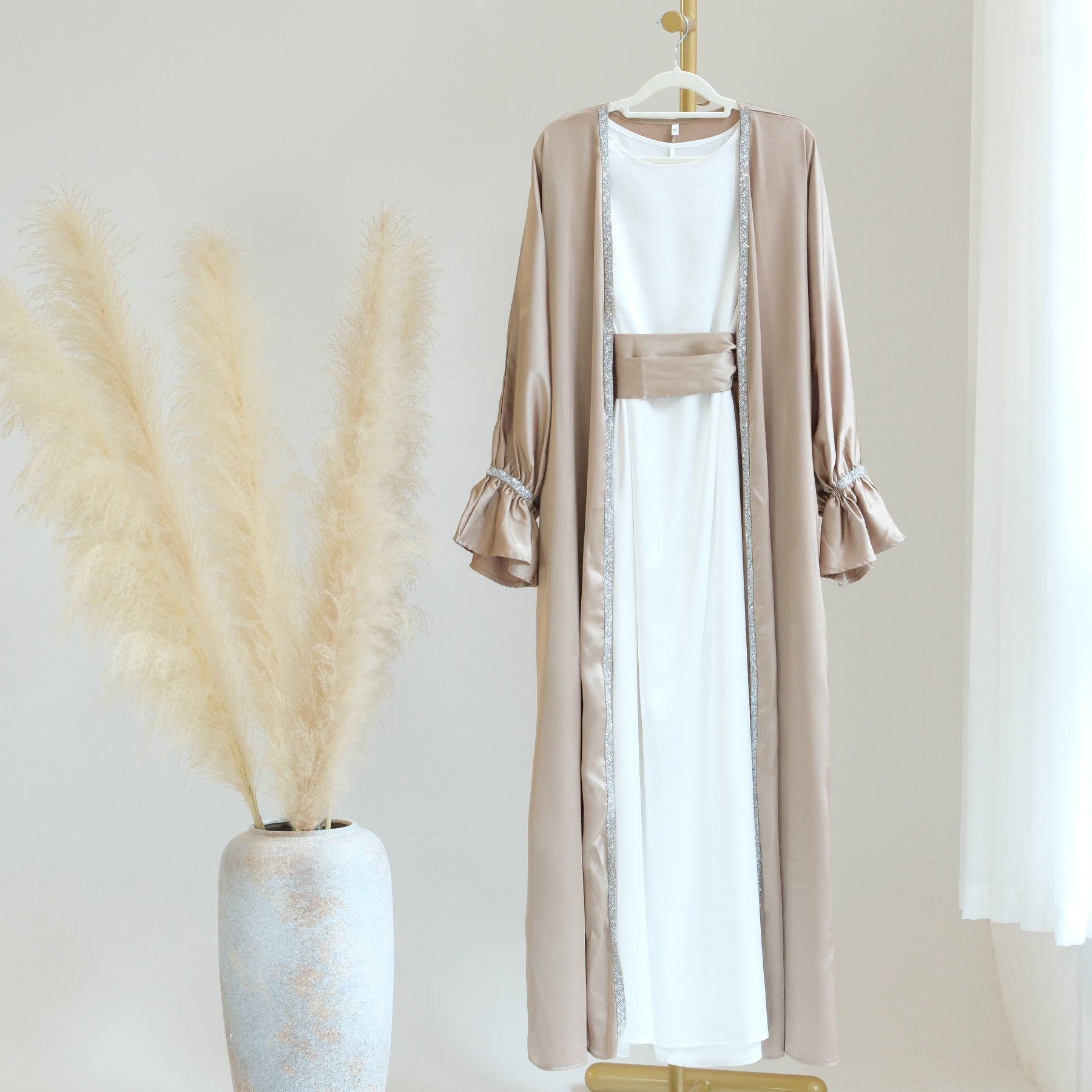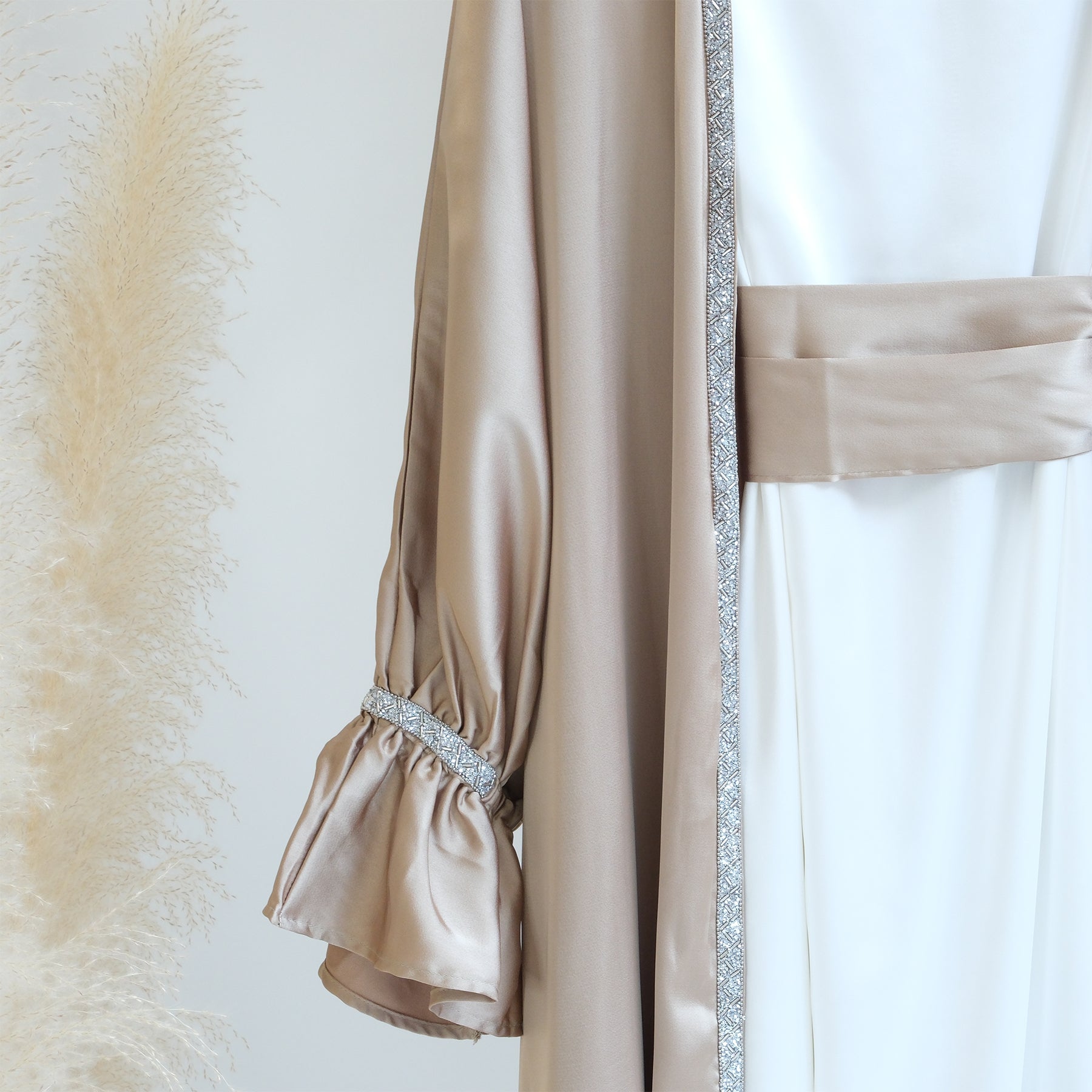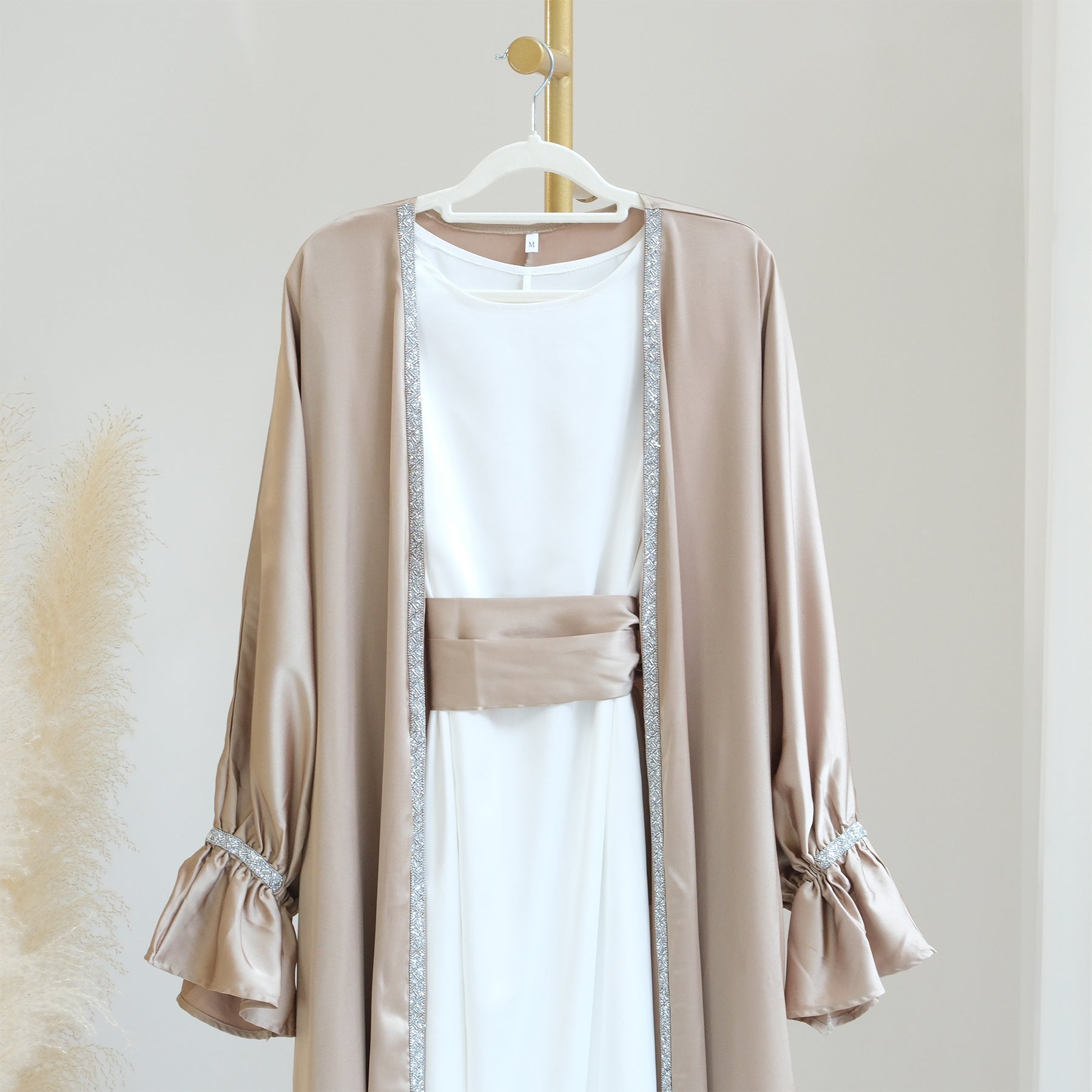 Two piece abaya set, comes with white sleeveless inner dress and outer abaya